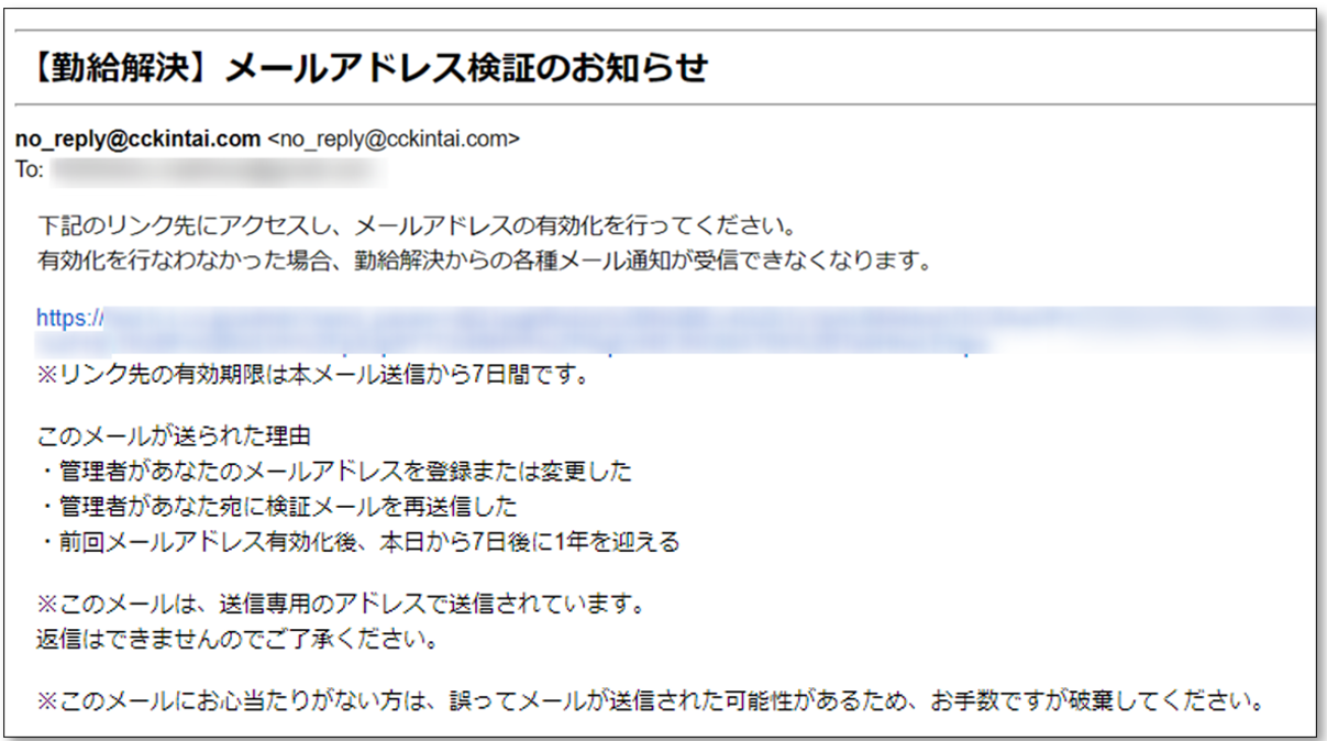 - タイトル:【KING OF TIME 勤怠管理】メールアドレス検証のお知らせ